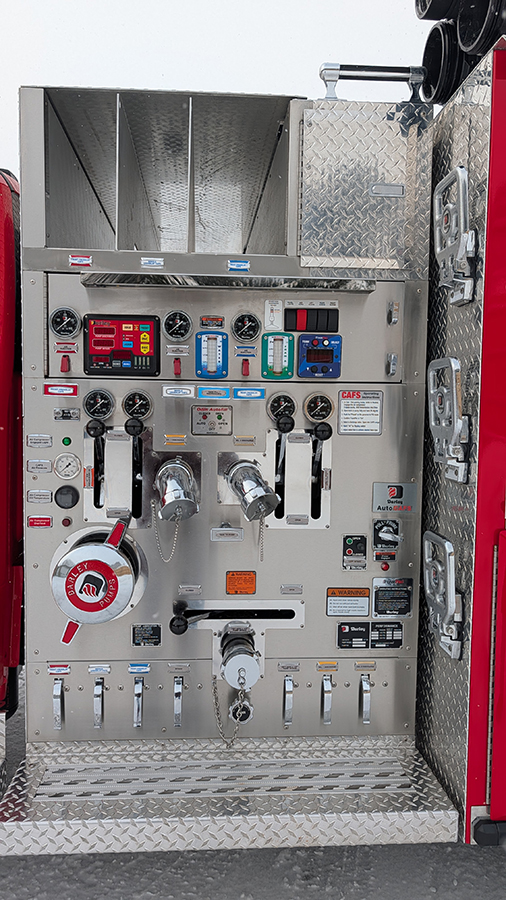 • Discharges: 3 CAFS crosslay discharges (2 – 1-1/2″ NSTM and 1 – 2-1/2″ NSTM)