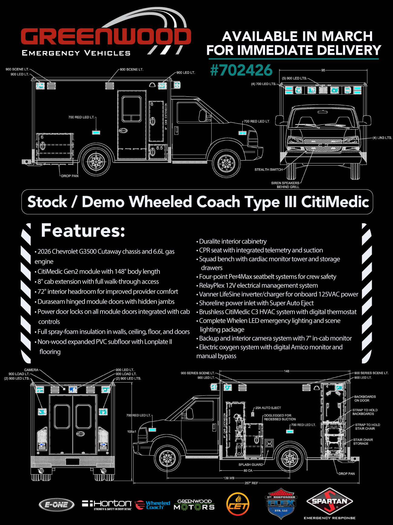 Stock# 702426 Type III CitiMedic Ambulance Call or send us an email for further information. -----Available for Delivery in March ----- -----Available for Delivery in March ----- View the Specs Or Download PDF View the Features Or Download PDF CALL NOW! EMAIL US Post navigation Stock# 702425 Type III CitiMedic AmbulanceCheshire, NH – Two (2) Wheeled Coach / Ford E350 Type III Ambulances